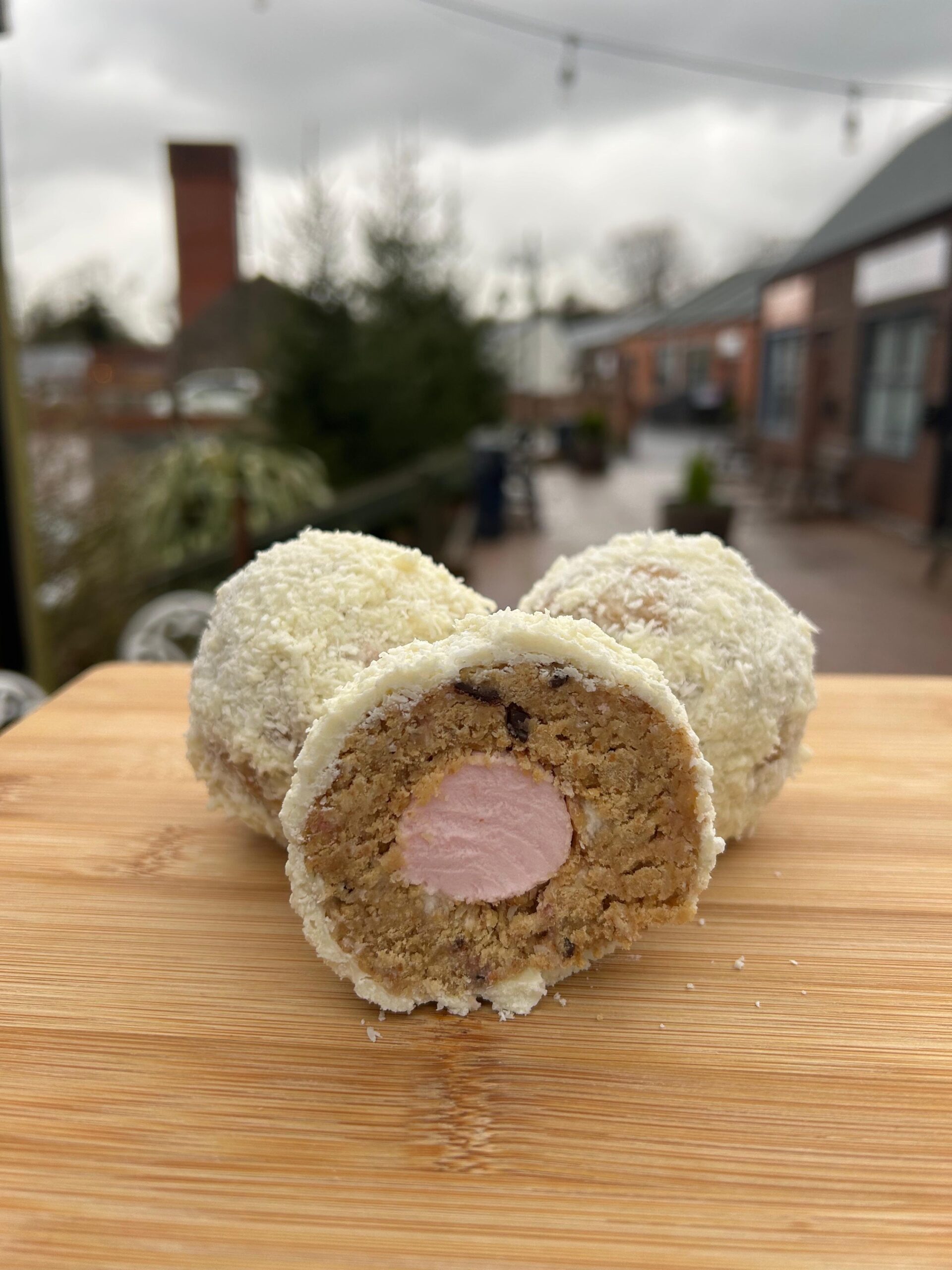 A traditional snowball made the DessertCo way…with our special 15’s (no cherries allowed, only Raspberry Ruffles!)